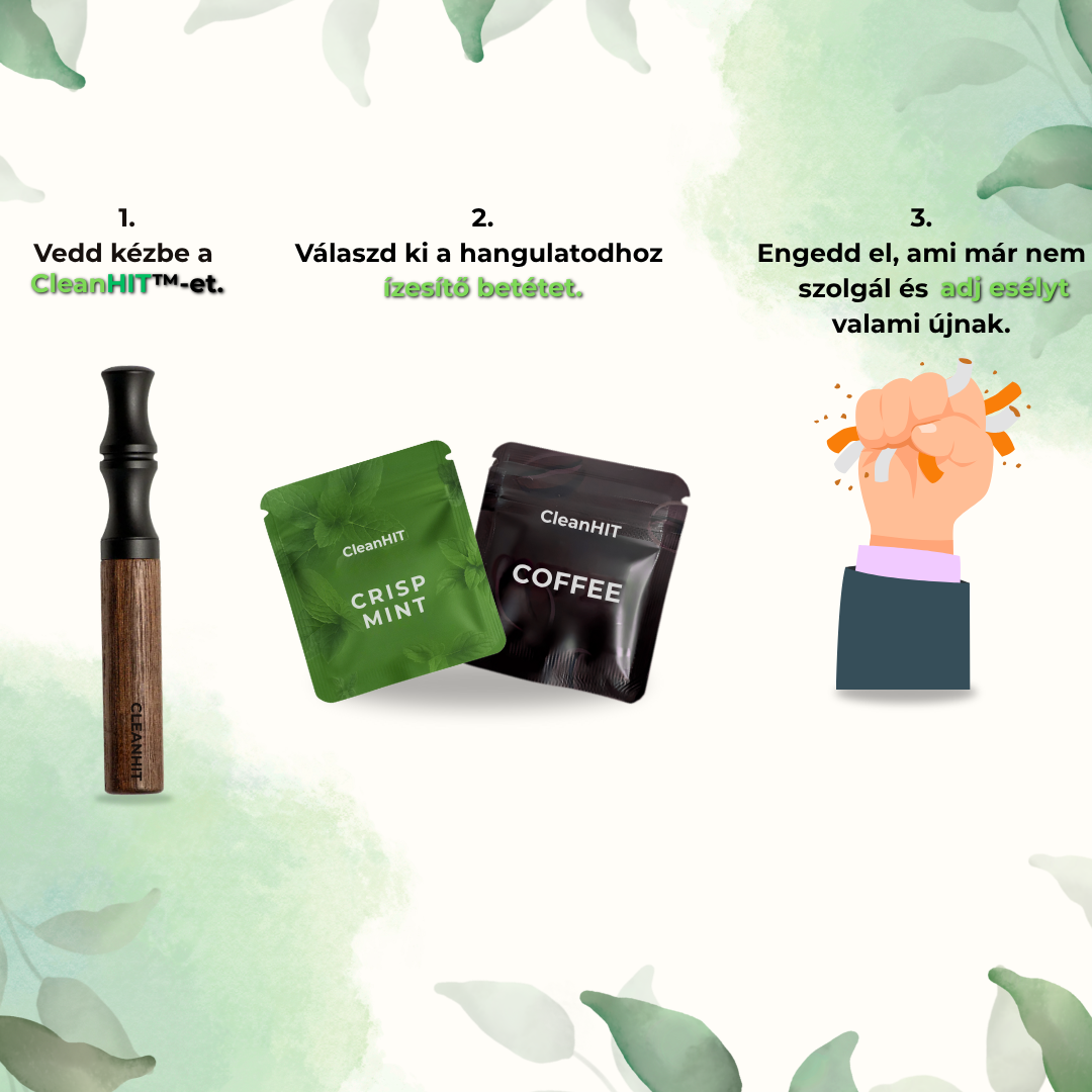 A CleanHIT természetes alapanyagokból készült ízesített levegőt biztosít, amely kellemes és frissítő élményt nyújt a tudatosabb életmód felé vezető úton.